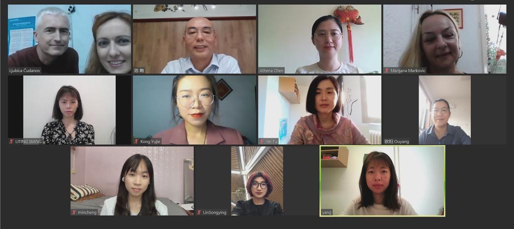 當地時間10月5日, 塞爾維亞卡爾洛夫茨語言高中(Karlovci Grammar School)校長布蘭科·斯托伊科夫(Branko Stojkov)與我校合作共建的諾維薩德大學孔子學院中方院長陳晦及漢語教師舉行視頻會議,討論和安排新學期孔子課堂的教學工作。本土教師麗碧彩·庫達諾娃(Ljubica Cudanov)和瑪麗安娜·馬科維奇(Marijana Markovic)參加會談。